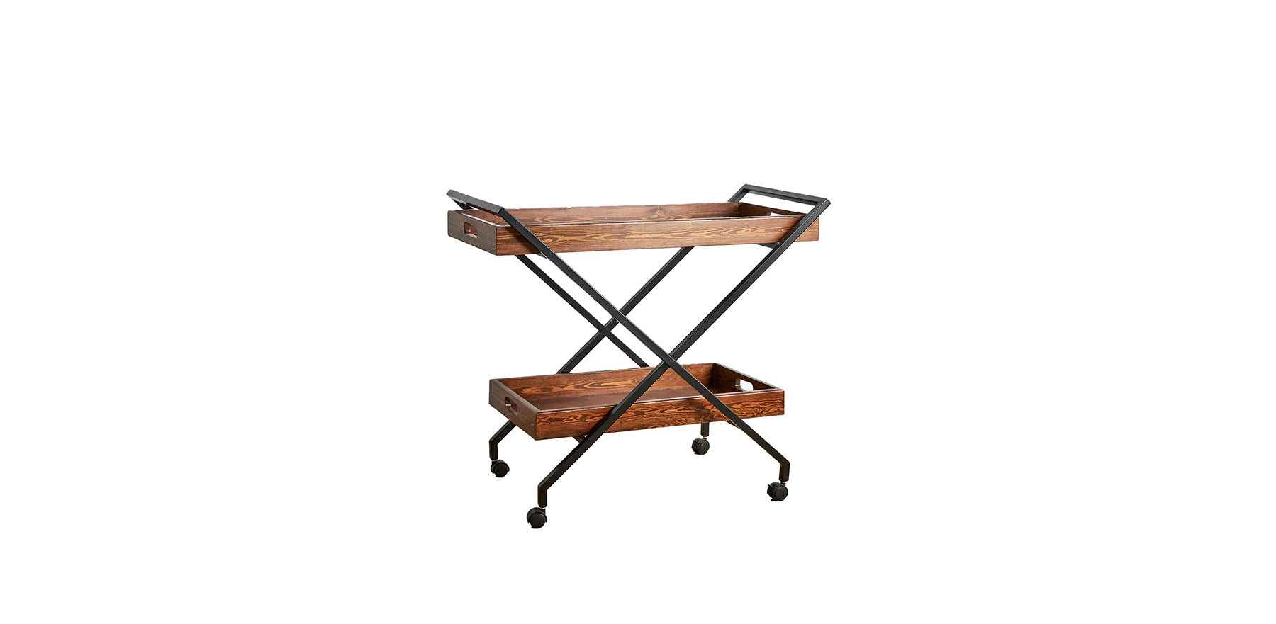 Black Matte Electrostatic Painted 2cm x 2cm Thick Hollow Metal Rods Wooden Movable Trays made of Pine solid wood sides & plywood base 4 Wheels...